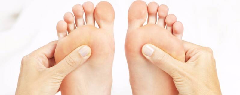 Een ontspannende voetmassage waarbij de reflexzones met duim en vingers worden bewerkt.
